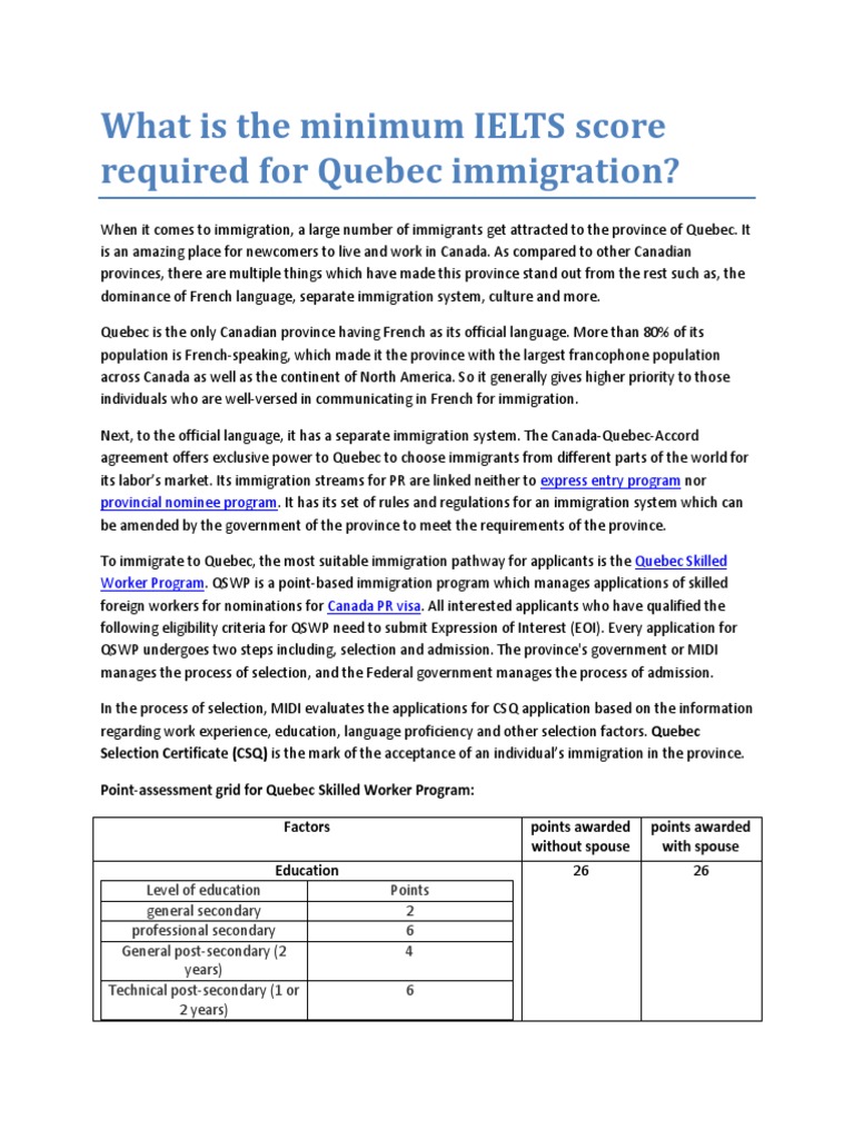 Quebec Score - What Is The Minimum Ielts Score Required For Quebec Immigration International English Language Testing System University And College Admission